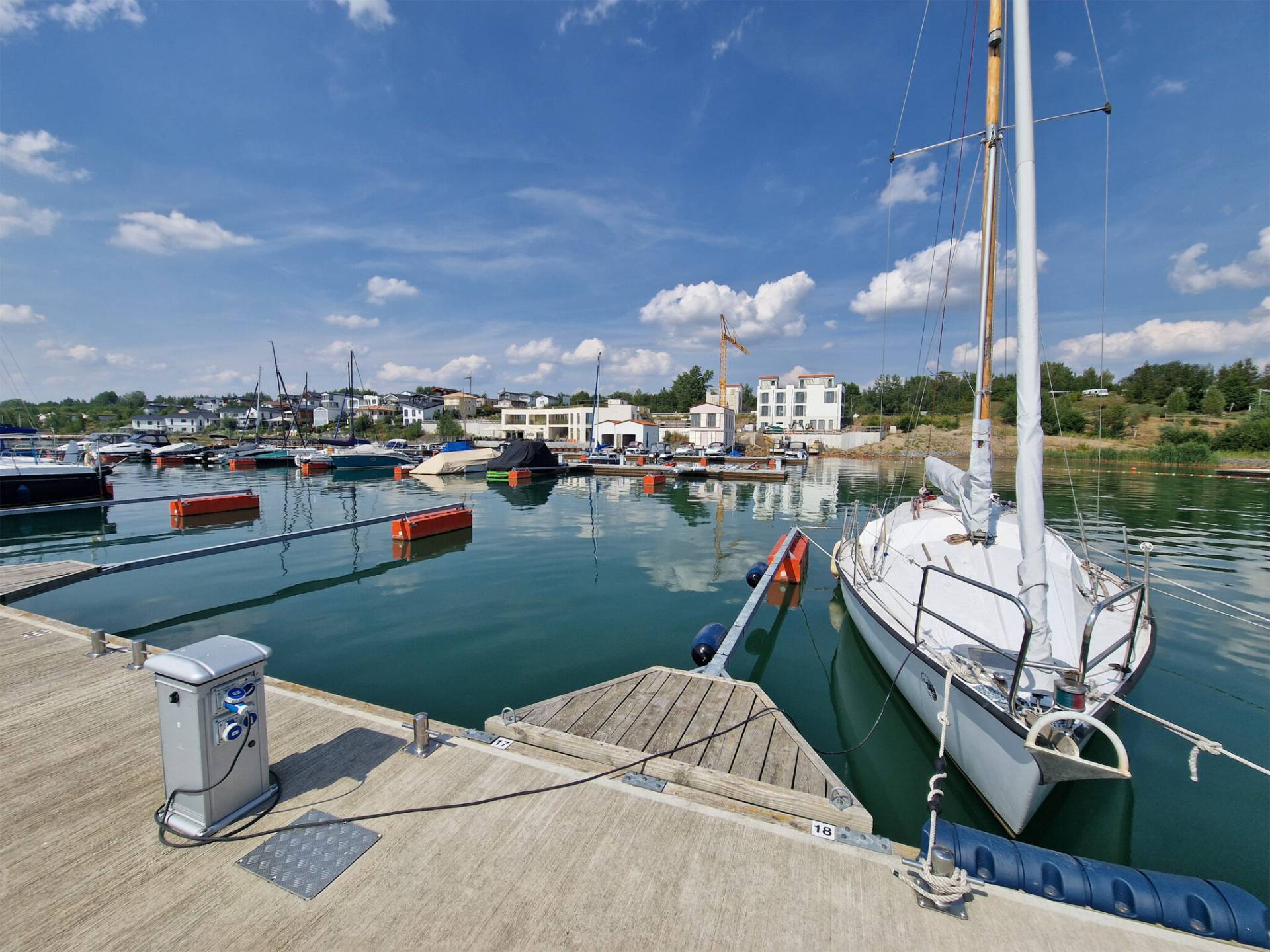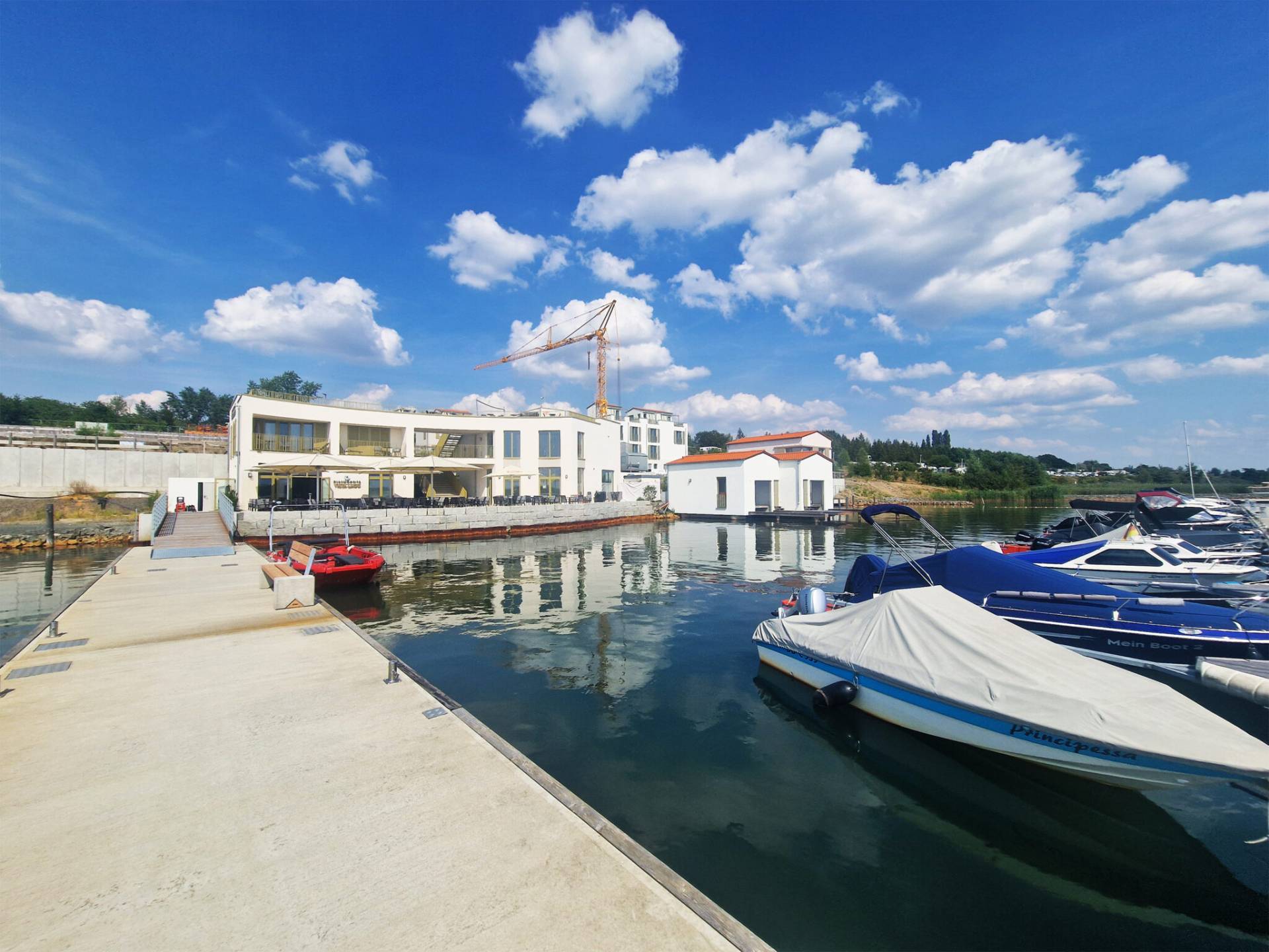 The modern vacation village consists of 17 buildings with 34 apartments, plus an administration building, two boat garages and a water sports center. There are also cafés and stores. In total, there is 4,400 m2 of heated floor space, which will benefit from the great potential of aquathermics in the future.